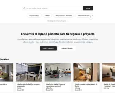 Our first product is www.compartirespacios.com, an online platform that facilitates the flexible rental of all kinds of shared workspaces (offices, consulting rooms, yoga studios, workshops, meeting rooms, etc.). It offers a sustainable and profitable solution for professionals, freelancers, and SMEs by reducing fixed costs, creating new income opportunities, and fostering synergies across diverse sectors. Sharing spaces not only enhances economic efficiency but also contributes to urban sustainability by avoiding underutilized infrastructure and promoting efficient resource use.